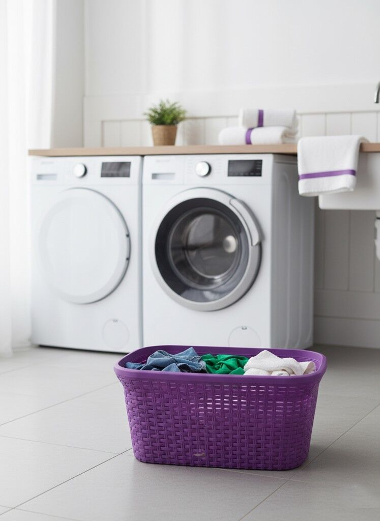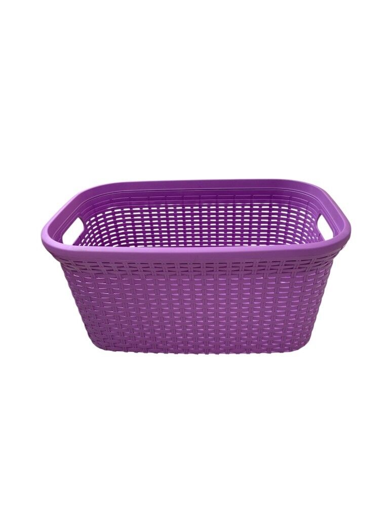 Mor, Hasır Desenli Plastik Çamaşır Selesi - 25x35x53cm