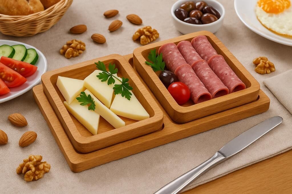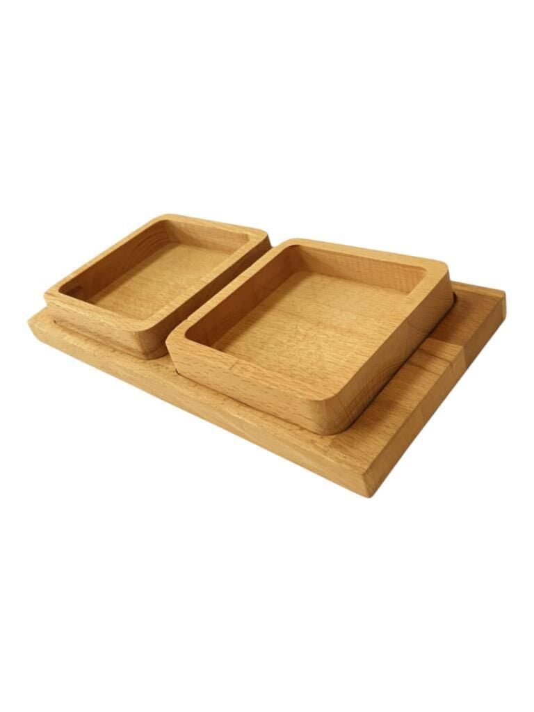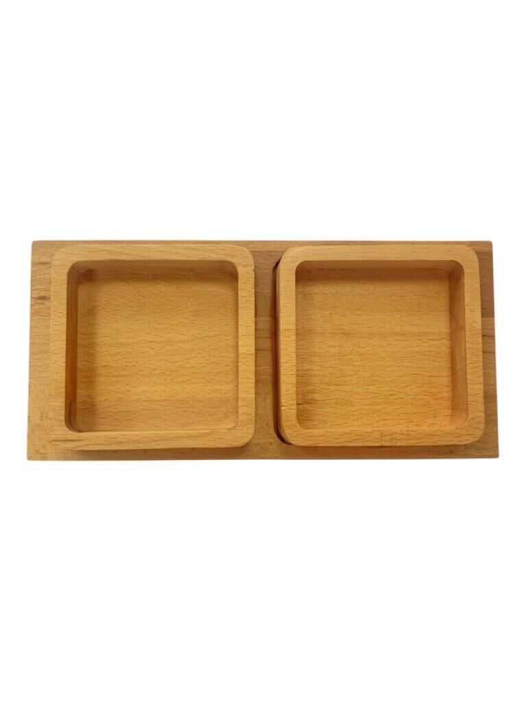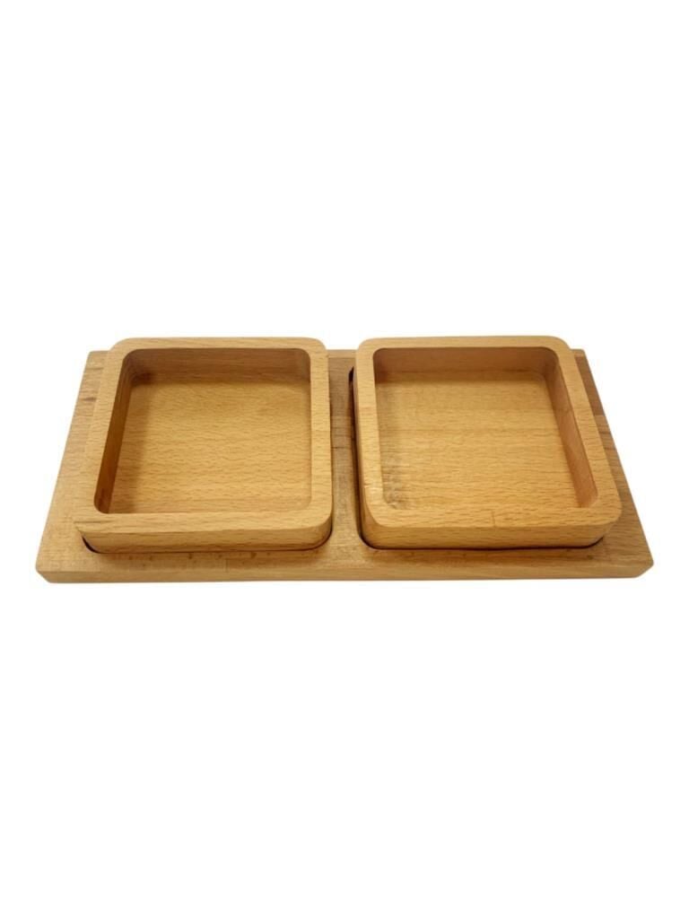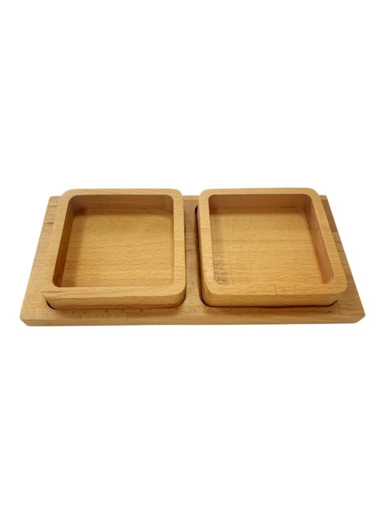 Saban Doğal Ahşap Çerezlik ve Kahvaltılık – Tepsili 2 Kaseli Sunum Tabağı T34
