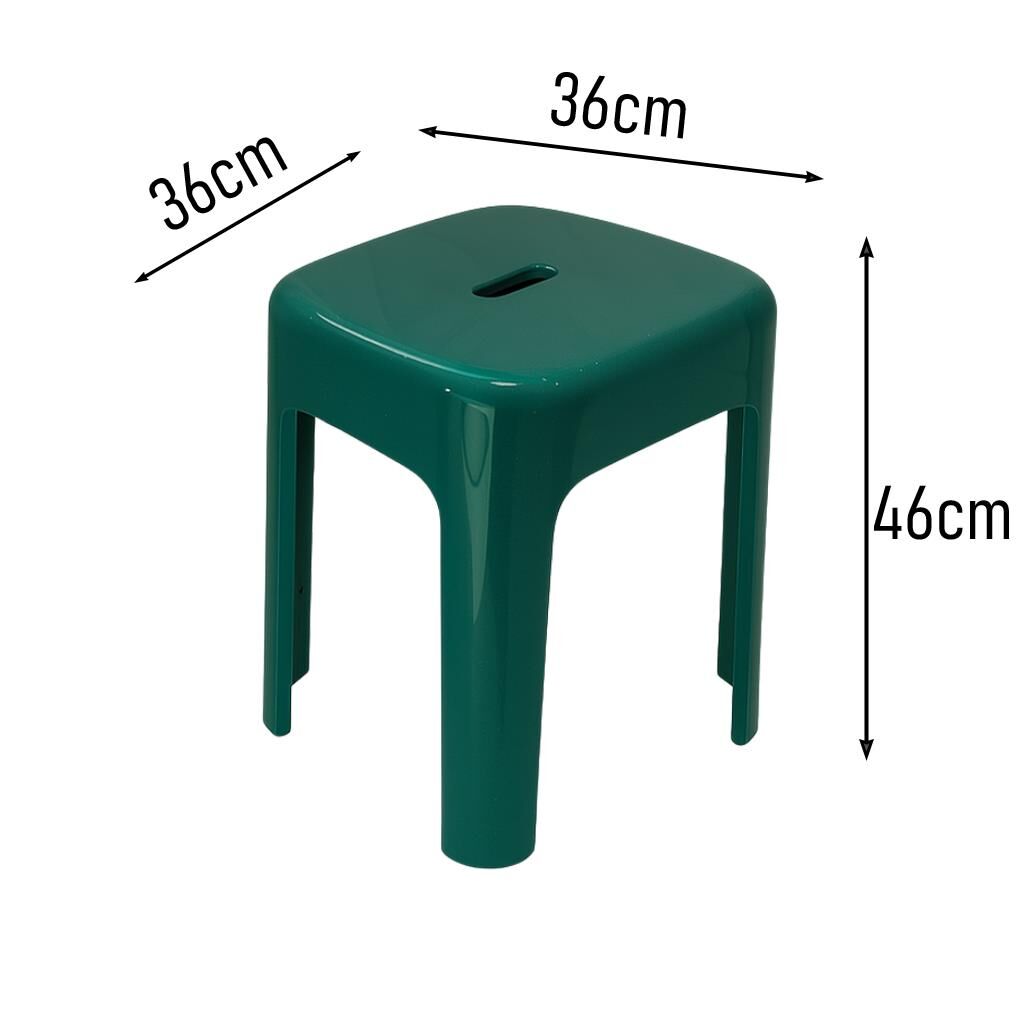 Modern ve sade tasarımıyla dikkat çeken yeşil plastik tabure, hem ev içinde hem de açık alanlarda pratik bir kullanım sunar. 36x36 cm oturma alanı ve 46 cm yüksekliği ile konforlu oturma deneyimi sağlar.
