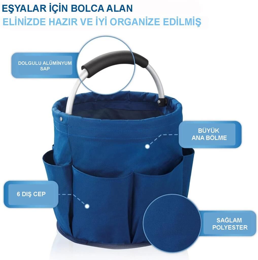Çok Bölmeli Kullanım Alanı: Ana göz ve yan cepler sayesinde tüm temizlik ekipmanlarını düzenli bir şekilde taşıyabilir ve saklayabilirsiniz.