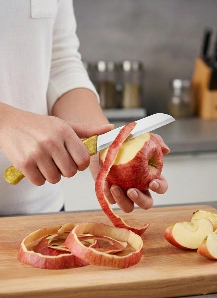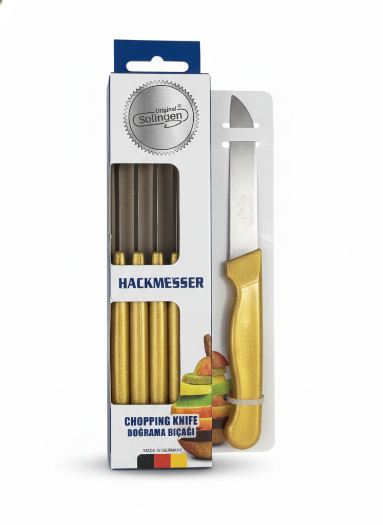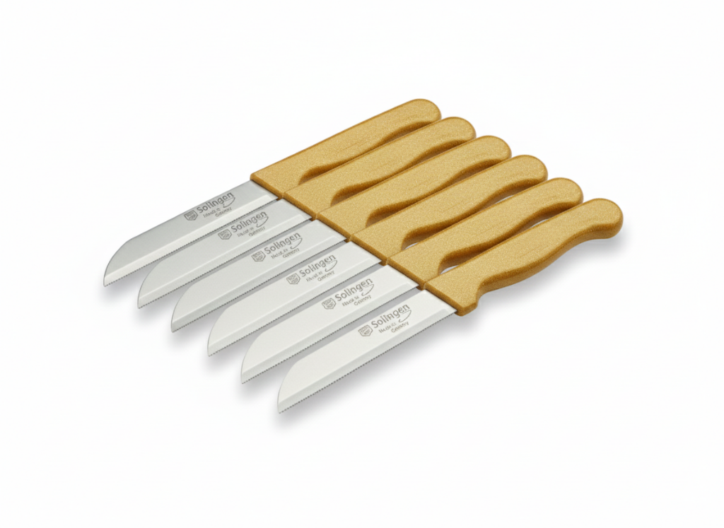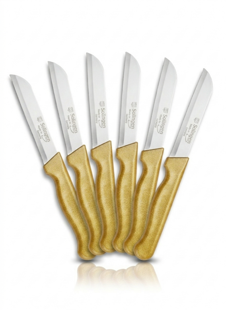 Sarı, 6’lı Paslanmaz Çelik Meyve Bıçağı Seti – Tırtıklı Keskin Ağız