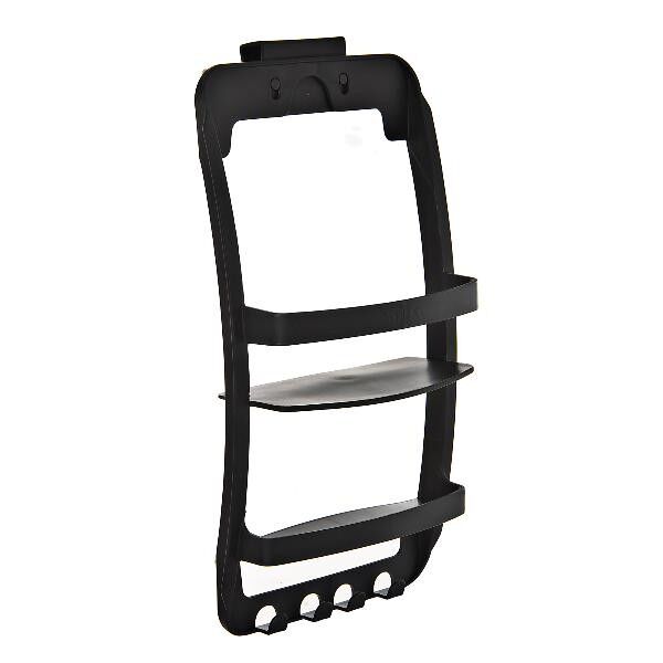 Siyah, 3 Katlı Banyo Duş Rafı - Askılıklı Banyo Organizeri - Delmeden Montaj