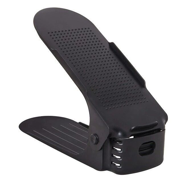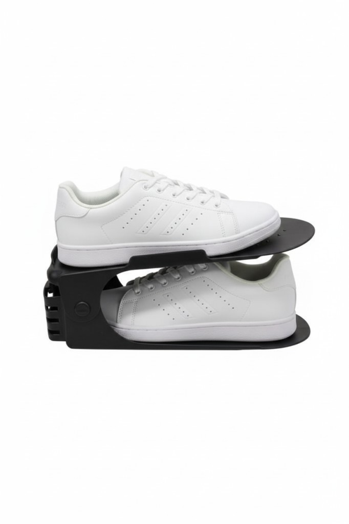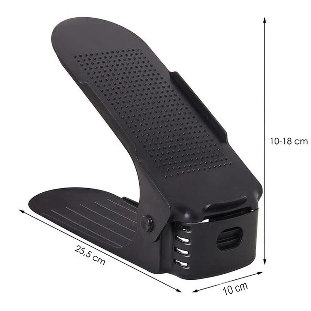 Siyah - 4'lü Set - Ayarlanabilir Ayakkabı Rampası - Çift Katlı Düzenleyici
