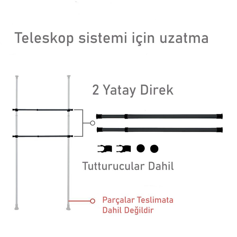 - Boyutlar (G/D x Y): her biri Ø 3 x 75 - 120 cm, 2'li set
