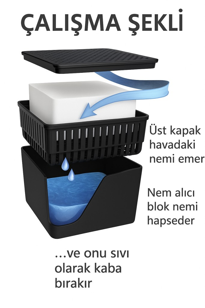 Siyah, Okyanus Kare - Nem Alıcı Rutubet Giderici Aparat + Tablet (500 Gram)