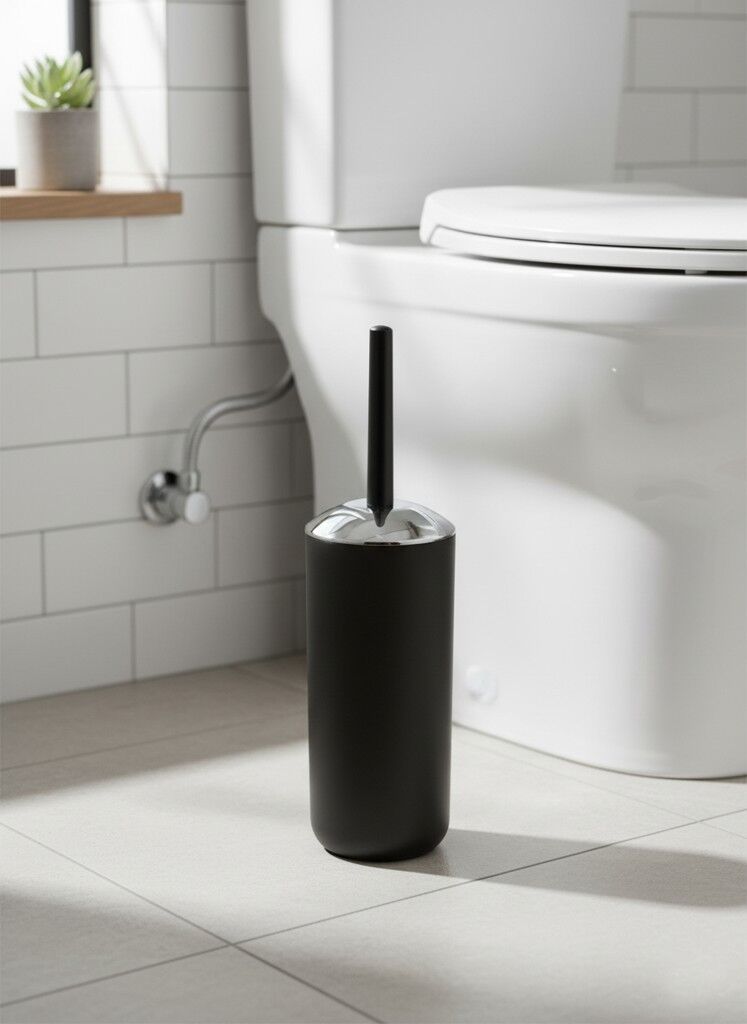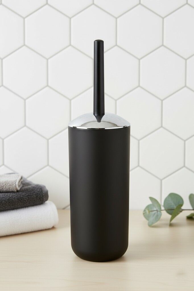 - Tuvalet fırçası tutucusu mat yüzeyli plastikten üretilmiştir, krom görünümlü şık kapak tasarımı tamamlar