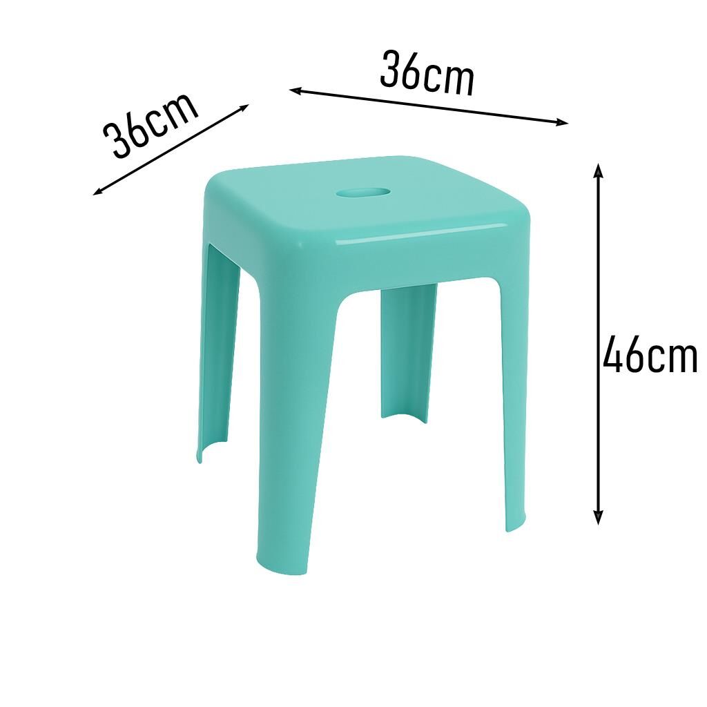 Modern ve sade tasarımıyla dikkat çeken su yeşili plastik tabure, hem ev içinde hem de açık alanlarda pratik bir kullanım sunar. 36x36 cm oturma alanı ve 46 cm yüksekliği ile konforlu oturma deneyimi sağlar.